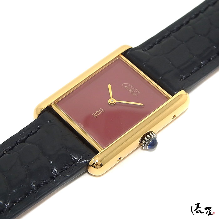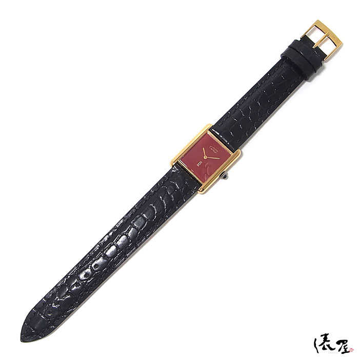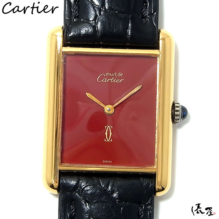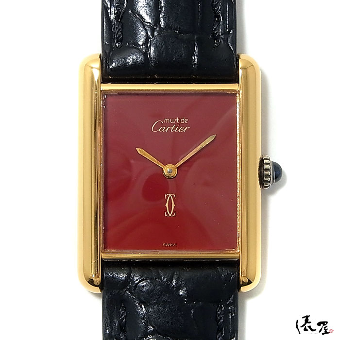 【入手困難】カルティエ マストタンク LM 手巻き レッド【ベルト交換無料】OH済み 極美品 ヴィンテージ メンズ レディース 【送料無料】 Cartier Tank 時計 中古