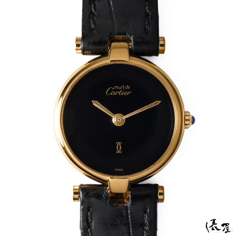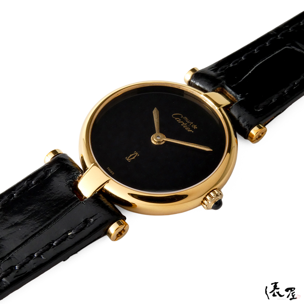 【ベルト交換無料】 カルティエ マストヴァンドーム SM 黒文字盤 【極美品】ヴィンテージ レディース アンティーク 腕時計 【送料無料】 Cartier Vendome 時計 中古