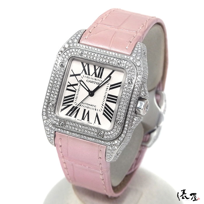 【フルダイヤ】カルティエ サントス100 MM ダイヤベゼル【美品】自動巻 腕時計 ボーイズ レディース【送料無料】 Cartier Santos 時計 中古