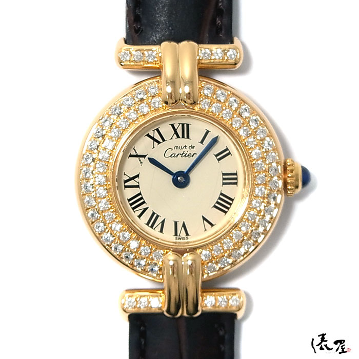 【国際保証書】カルティエ マストコリゼ 2重ダイヤベゼル 【加工後未使用】極美品 ヴィンテージ レディース 腕時計 コリゼ 【送料無料】 Cartier colisee 時計 中古