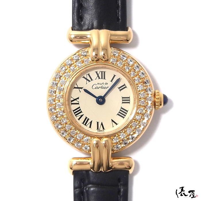 【ダイヤベゼル】 カルティエ コリゼ 極美品 【ベルト交換無料】 ヴィンテージ レディース 腕時計 マストコリゼ 加工後未使用 【送料無料】 Cartier colisee 時計 中古