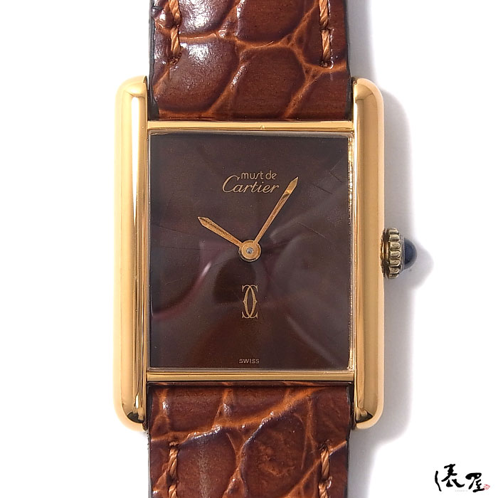 【希少モデル】カルティエ マストタンク LM 手巻き式【ベルト交換無料】マホガニー 極美品 ヴィンテージ アンティーク メンズ 腕時計【送料無料】Cartier Tank 時計 中古