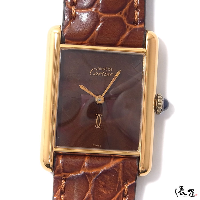 【希少モデル】カルティエ マストタンク SM 手巻き式【ベルト交換無料】マホガニー 極美品 ヴィンテージ アンティーク 腕時計【送料無料】Cartier Tank 時計 中古