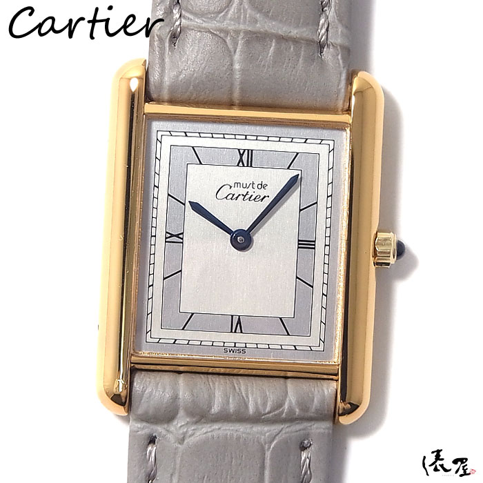 【国際保証書】カルティエ マストタンク LM グレー文字盤 【ベルト交換無料】極美品 ヴィンテージ QZ メンズ レディース 腕時計【送料無料】Cartier Tank 時計 中古