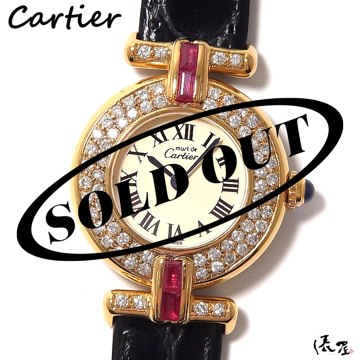【ダイヤ&ルビー】カルティエ マスト コリゼ 極美品【ベルト交換無料】アンティーク ヴィンテージ レディース 腕時計【送料無料】 Cartier colisee 時計 中古