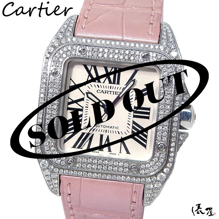 【フルダイヤ】カルティエ サントス100 MM ダイヤベゼル【美品】自動巻 腕時計 ボーイズ レディース【送料無料】 Cartier Santos 時計 中古