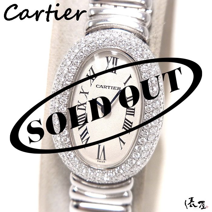 【極美品】カルティエ ミニベニュワール ダイヤベゼル【K18WG】ホワイトゴールド レディース 腕時計 【送料無料】 Cartier Baignoire 時計 中古
