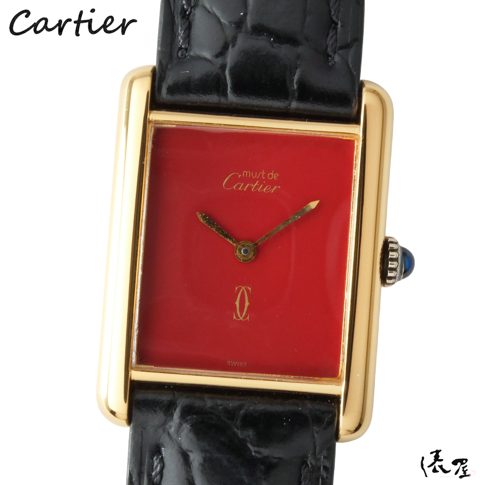 【入手困難】カルティエ マストタンク LM 手巻き レッド【ベルト交換無料】OH済み 極美品 ヴィンテージ メンズ レディース 【送料無料】 Cartier Tank 時計 中古