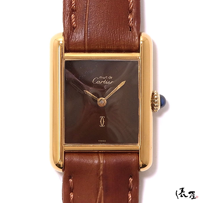 【希少モデル】カルティエ マストタンク SM 手巻き式【ベルト交換無料】マホガニー 極美品 ヴィンテージ アンティーク 腕時計【送料無料】Cartier Tank 時計 中古