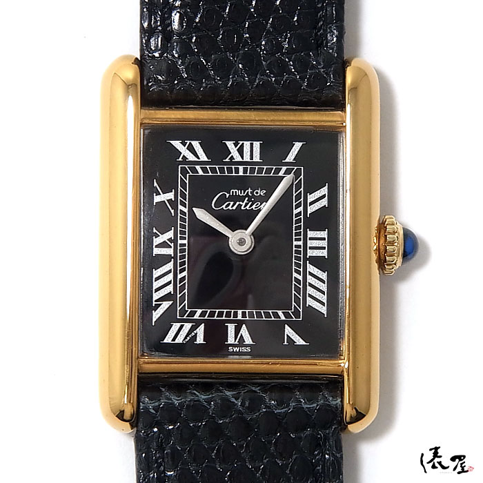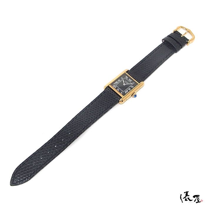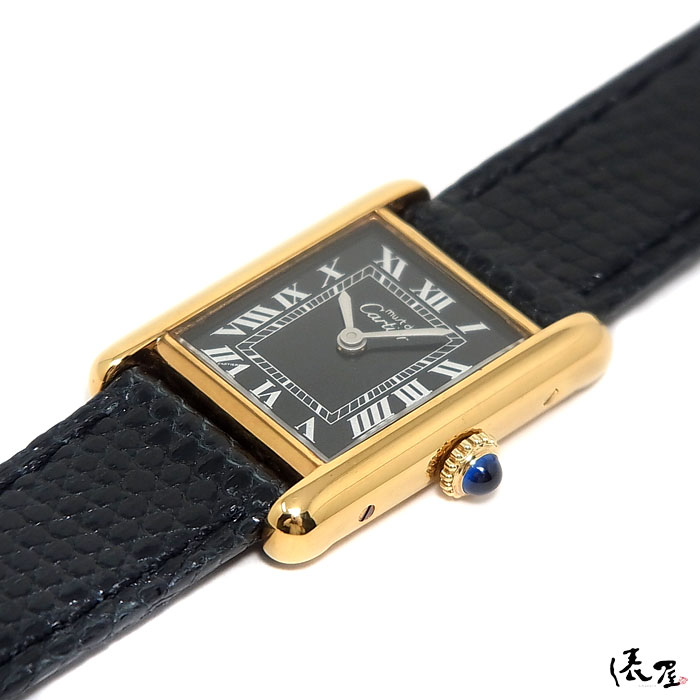 【極美品】 カルティエ マストタンク SM 手巻き 【ベルト交換無料】 黒文字盤 ヴィンテージ レディース 腕時計 【送料無料】 Cartier Tank 時計 中古