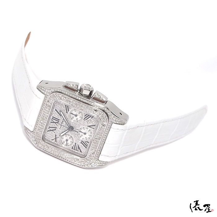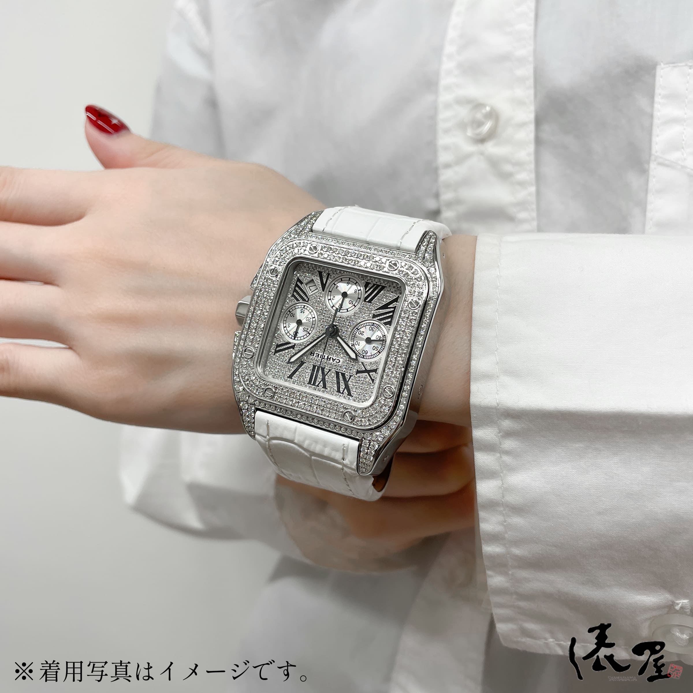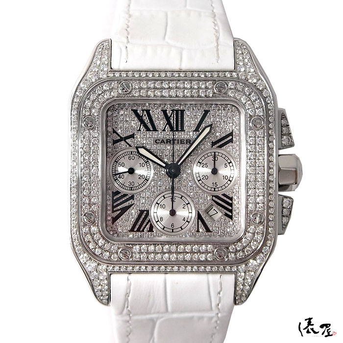 【ダイヤ文字盤】カルティエ サントス100 XL クロノグラフ 【極美品】自動巻 メンズ 腕時計【送料無料】 Cartier Santos 時計 中古