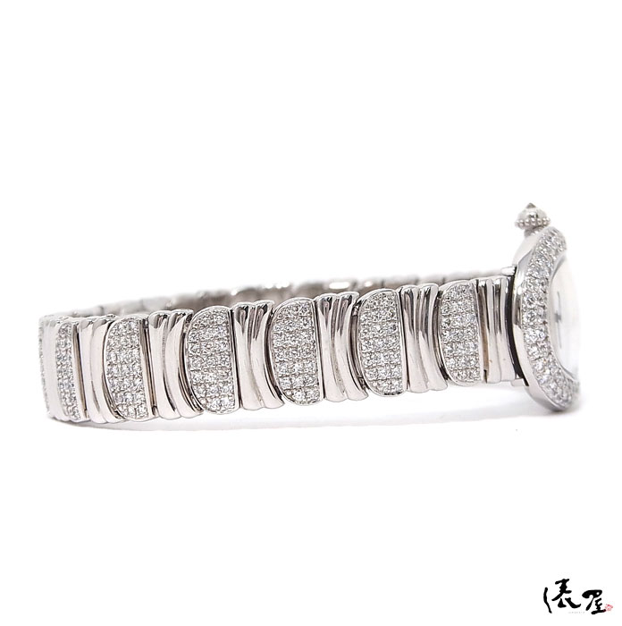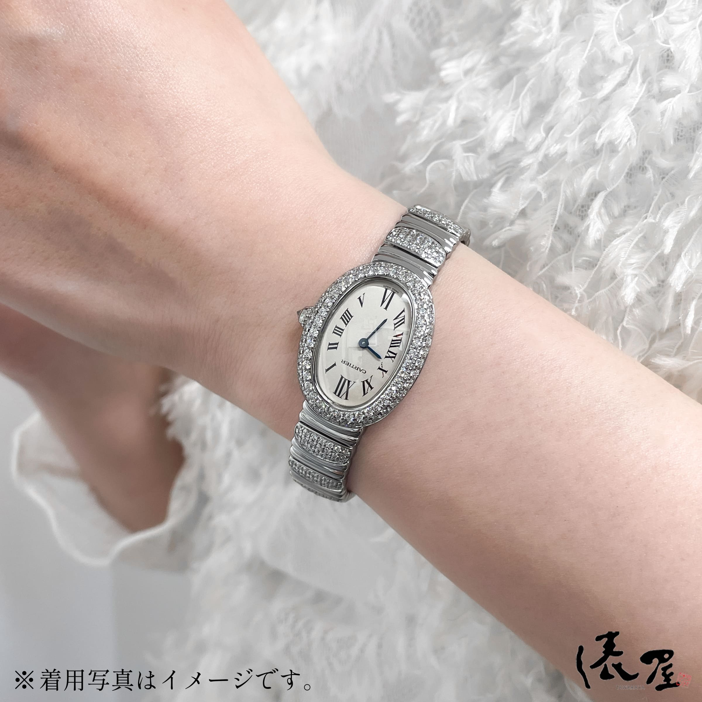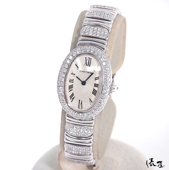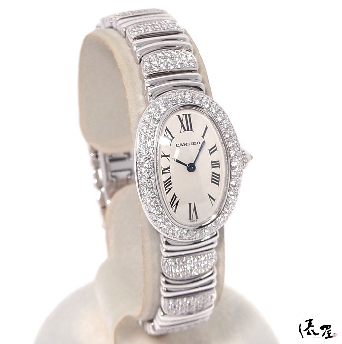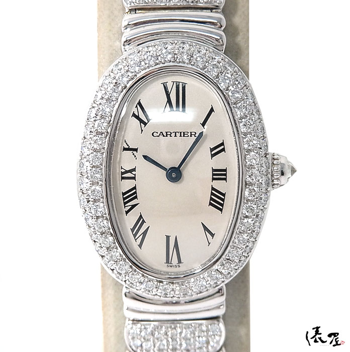 【ダイヤブレス】 カルティエ ベニュワール ダイヤベゼル 【極美品】K18WG レディース 腕時計 【送料無料】 Cartier Baignoire ホワイトゴールド 時計 中古