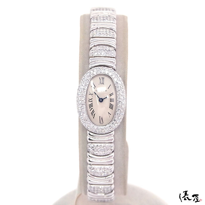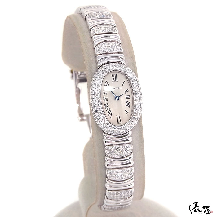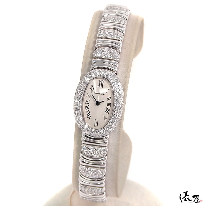 【ダイヤブレス】カルティエ ミニベニュワール 極美品 【オーバーホール済】K18WG ハーフダイヤ ホワイトゴールド レディース 腕時計 【送料無料】 Cartier Baignoire 時計 中古