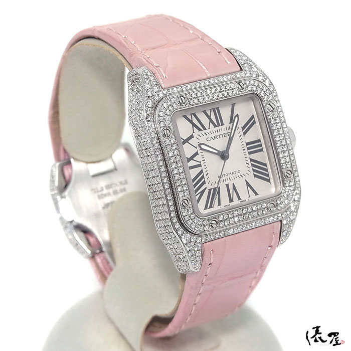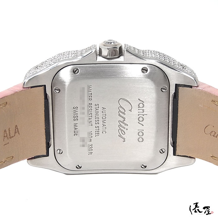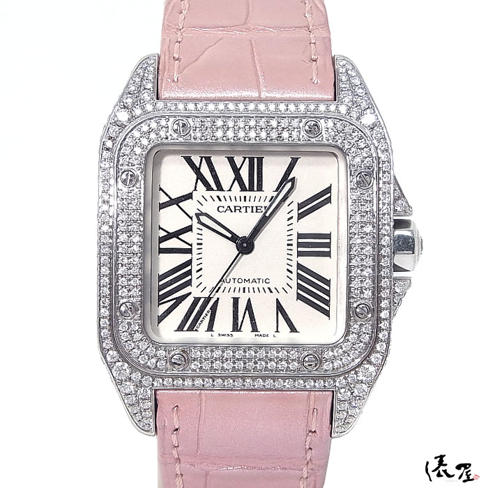 【フルダイヤ】カルティエ サントス100 MM ダイヤベゼル【美品】自動巻 腕時計 ボーイズ レディース【送料無料】 Cartier Santos 時計 中古