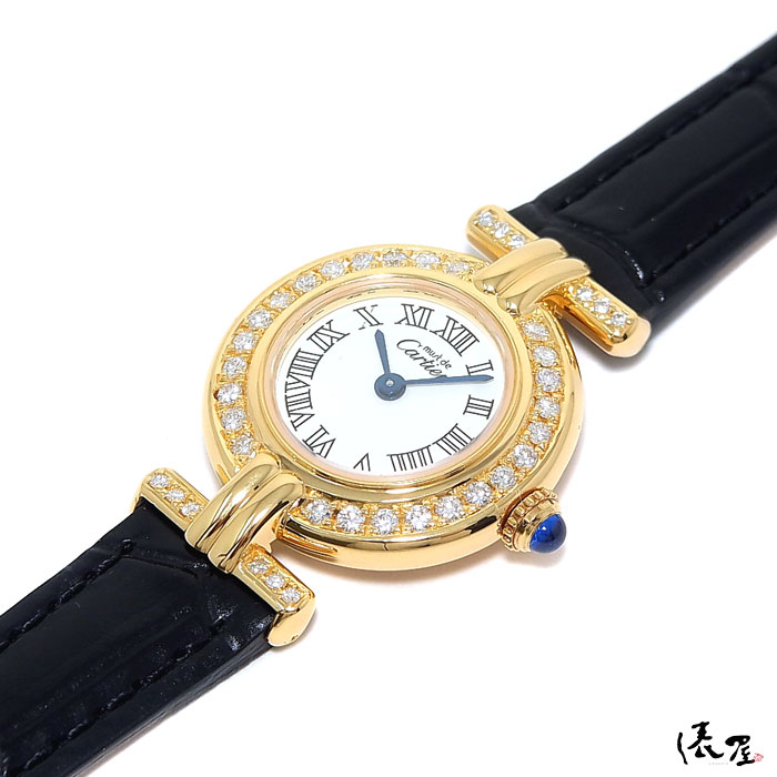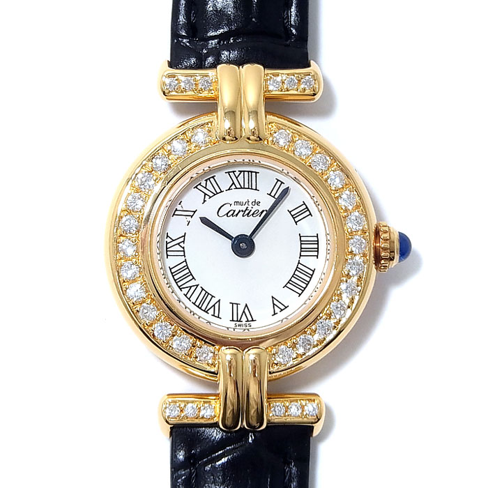 【ダイヤベゼル】 カルティエ マストコリゼ ホワイトローマン 極美品【ベルト交換無料】後期モデル レディース 腕時計 ヴィンテージ 【送料無料】 Cartier colisee 時計 中古