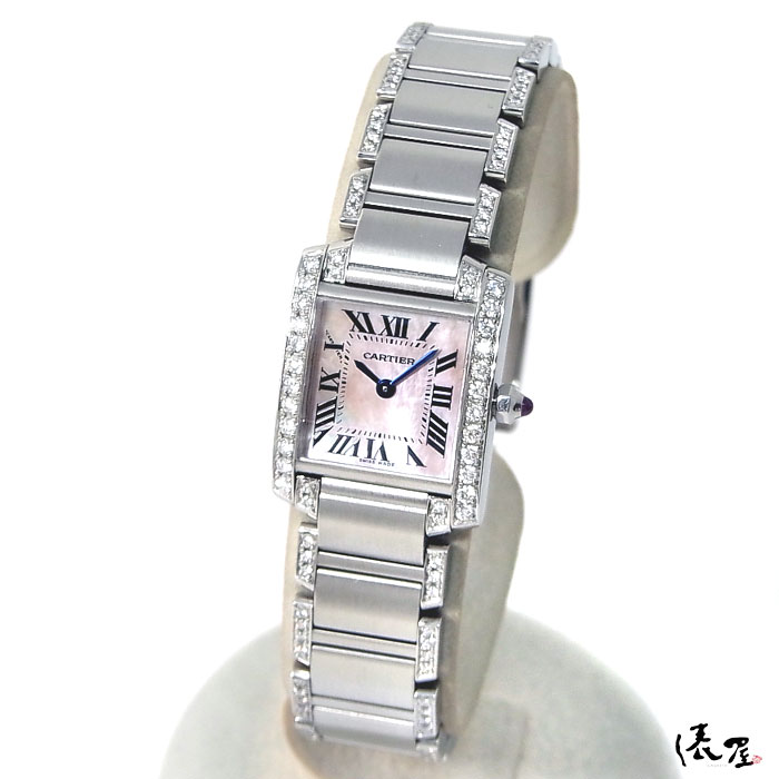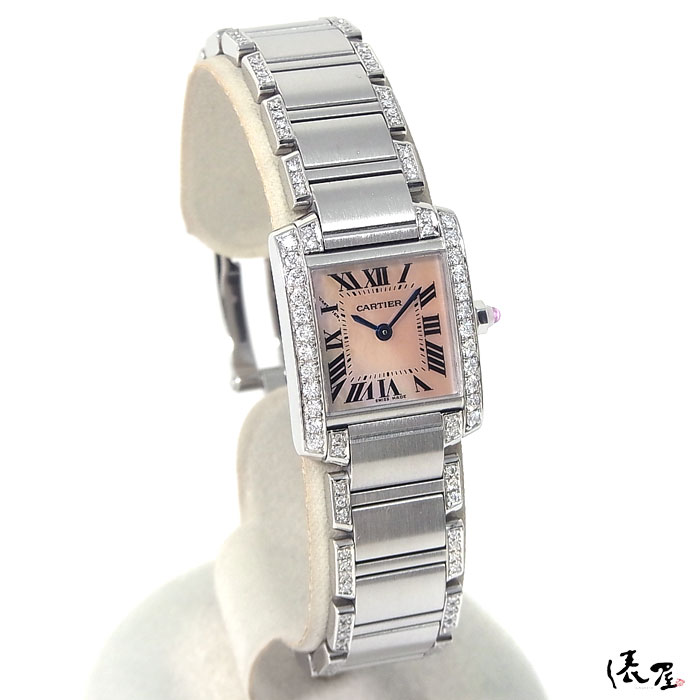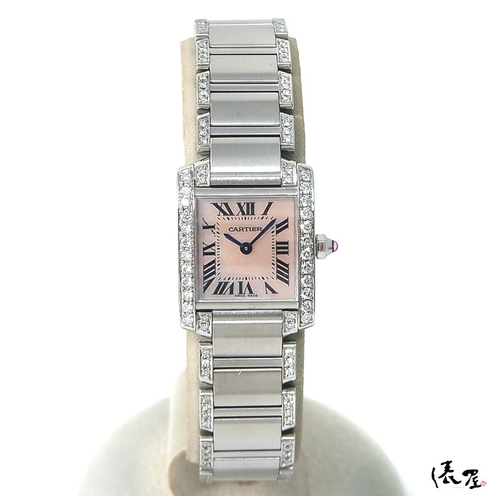 【ダイヤブレス】 カルティエ タンクフランセーズ SM ピンクシェル 【極美品】加工後未使用 レディース 腕時計 SS 【送料無料】 Cartier Tank francaise 時計 中古