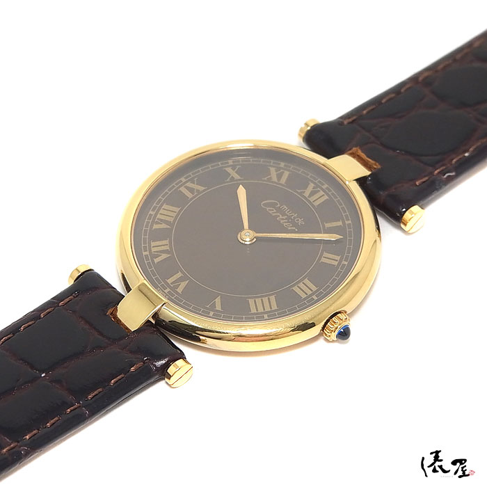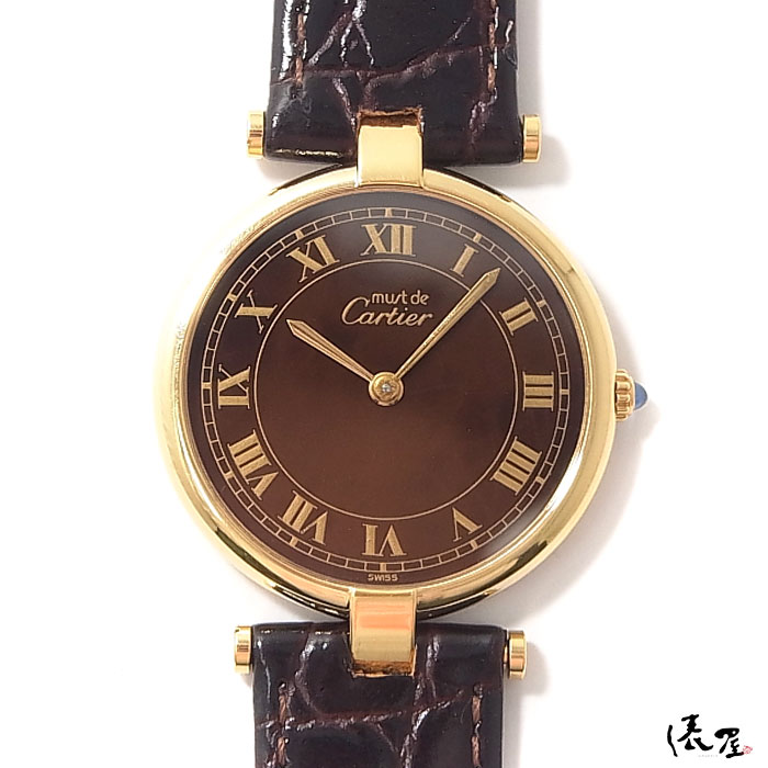 【国際保証書】カルティエ マストヴァンドーム LM ブラウン 【レアモデル】極美品 ラージサイズ メンズ ヴィンテージ 腕時計 【送料無料】 Cartier vendome 時計 中古 俵屋