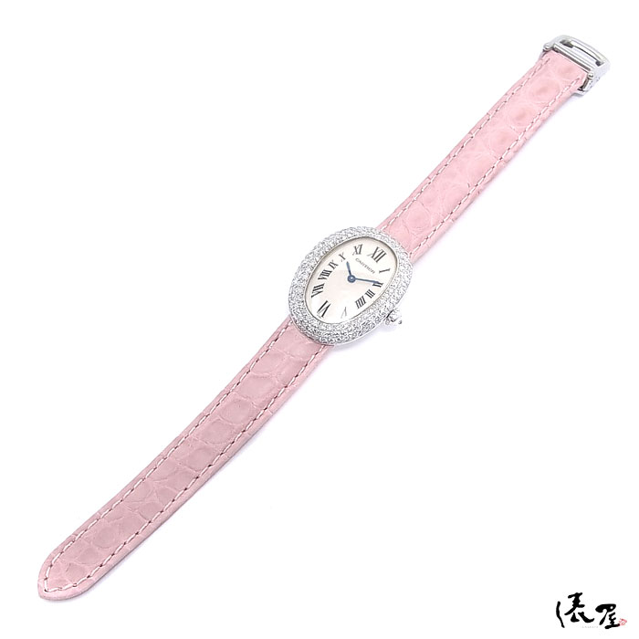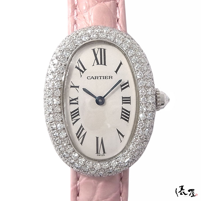 【3重ダイヤベゼル】 カルティエ K18WG ベニュワール【極美品】レディース 腕時計 【送料無料】 Cartier Baignoire ホワイトゴールド 時計 中古