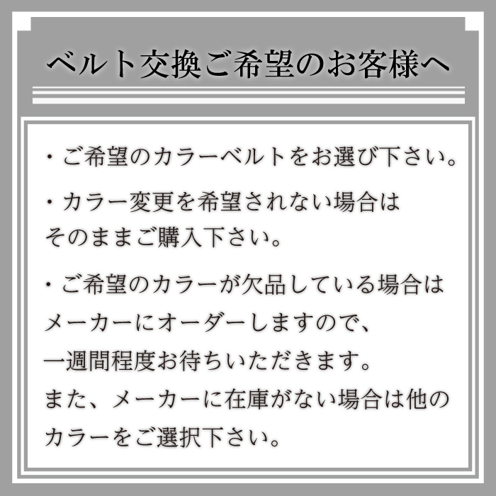 ※ベルト交換、サイズ調整をご希望のお客様はご購入後にお申し付けください。(交換不可の商品もございます)