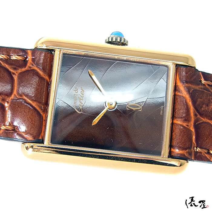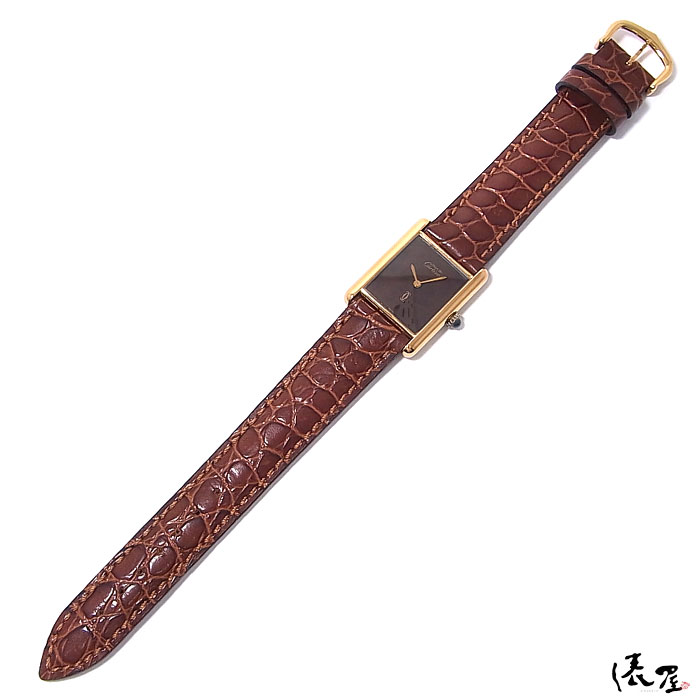 【希少モデル】カルティエ マストタンク LM 手巻き式【ベルト交換無料】マホガニー 極美品 ヴィンテージ アンティーク メンズ 腕時計【送料無料】Cartier Tank 時計 中古