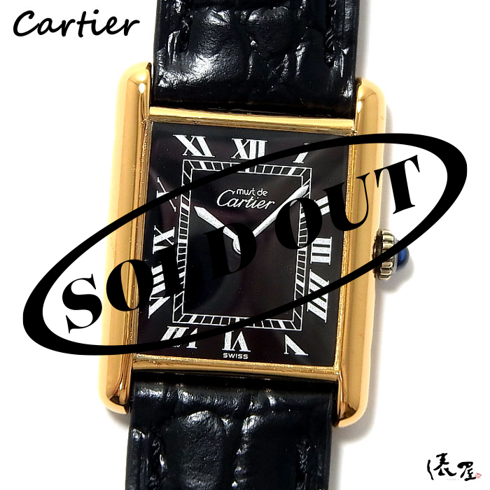 【コンプリート済】 カルティエ マストタンク LM 手巻き式 【ベルト交換無料】 極美品 ヴィンテージ 黒文字盤 メンズ レディース 【送料無料】 Cartier Tank 時計 中古