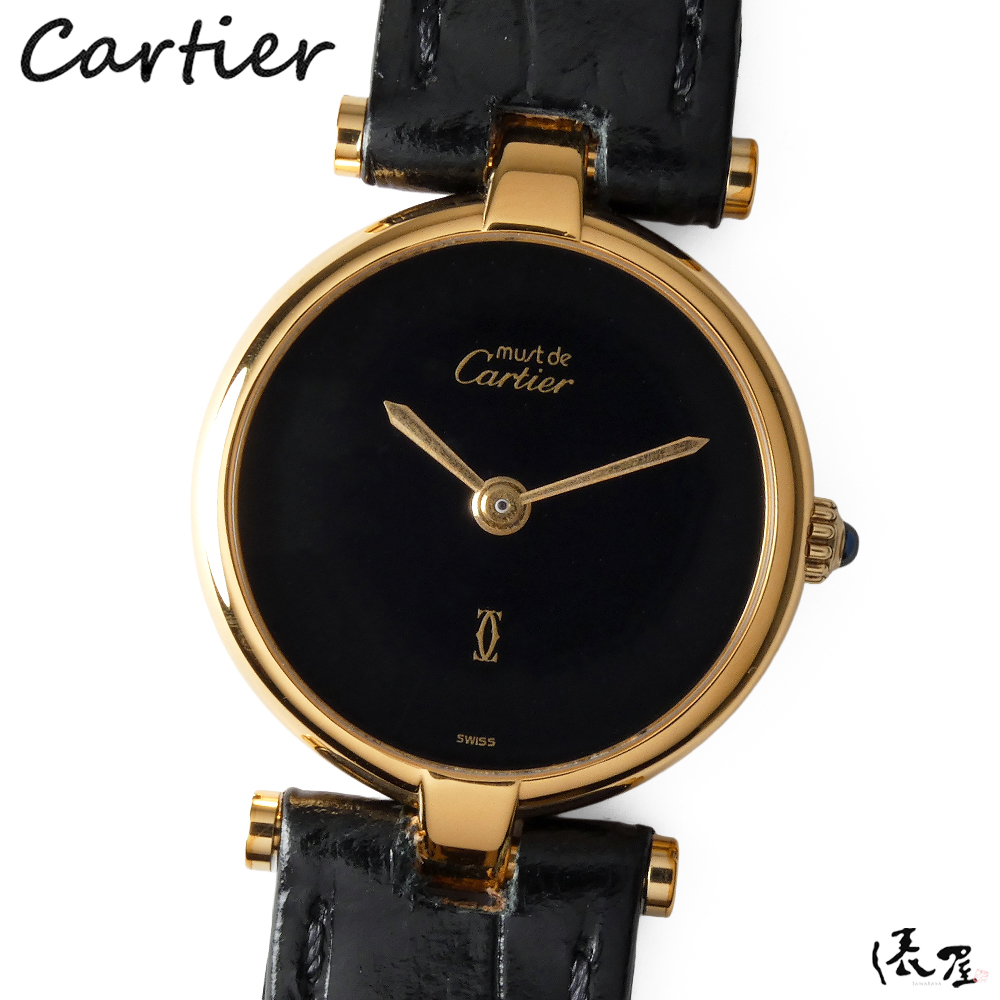 【ベルト交換無料】 カルティエ マストヴァンドーム SM 黒文字盤 【極美品】ヴィンテージ レディース アンティーク 腕時計 【送料無料】 Cartier Vendome 時計 中古