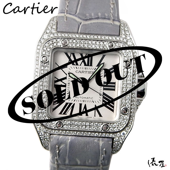 【フルダイヤ】カルティエ サントス100 MM ダイヤベゼル【美品】自動巻 腕時計 ボーイズ レディース【送料無料】 Cartier Santos 時計 中古
