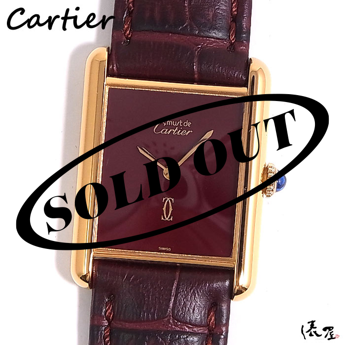 【ベルト交換無料】 カルティエ マストタンク SM ボルドー 旧型【美品】 QZ レディース 腕時計 ヴィンテージ 【送料無料】 Cartier Tank 時計 中古