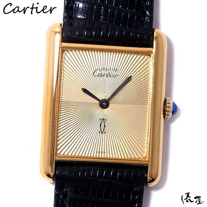 【希少モデル】カルティエ マストタンク LM サンレイ 手巻き式【ベルト交換無料】極美品 ヴィンテージ アンティーク メンズ 腕時計【送料無料】Cartier Tank 時計 中古