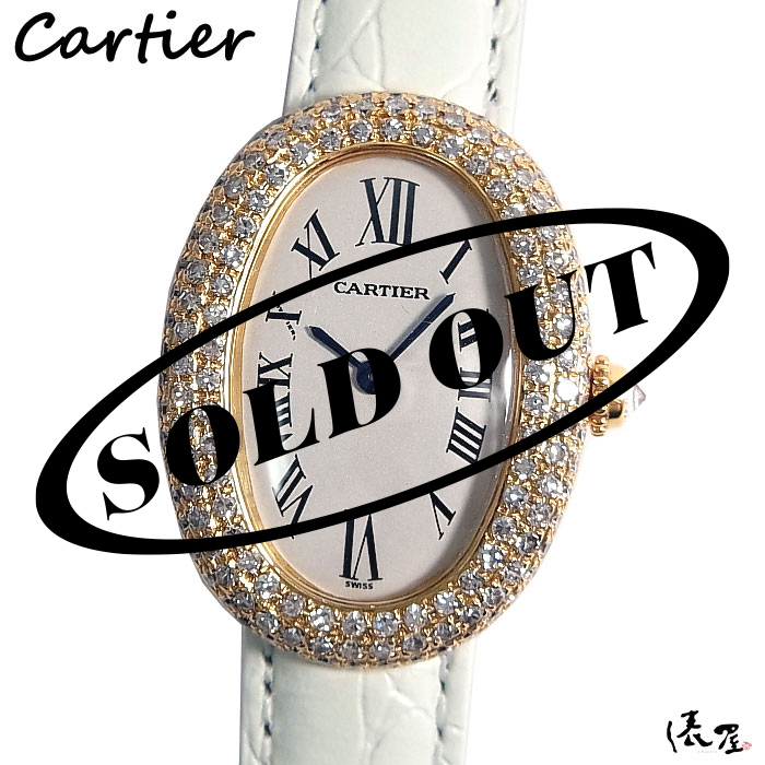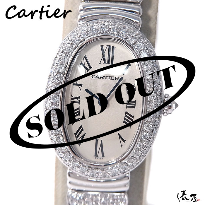 【ダイヤブレス】 カルティエ ベニュワール ダイヤベゼル 【極美品】K18WG レディース 腕時計 【送料無料】 Cartier Baignoire ホワイトゴールド 時計 中古