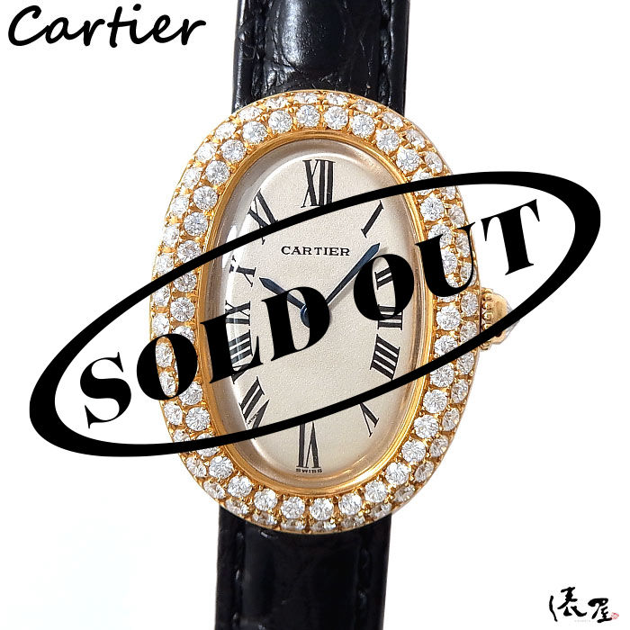【極美品】 カルティエ K18 ベニュワール ダイヤベゼル 【Dバックルモデル】レディース ヴィンテージ 腕時計 【送料無料】 Cartier Baignoire イエローゴールド 時計 中古